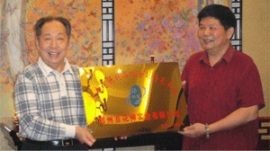 河南省保健協會會長韓文興先生向《百花散》傳人梅安富先生授協會副會長銅牌